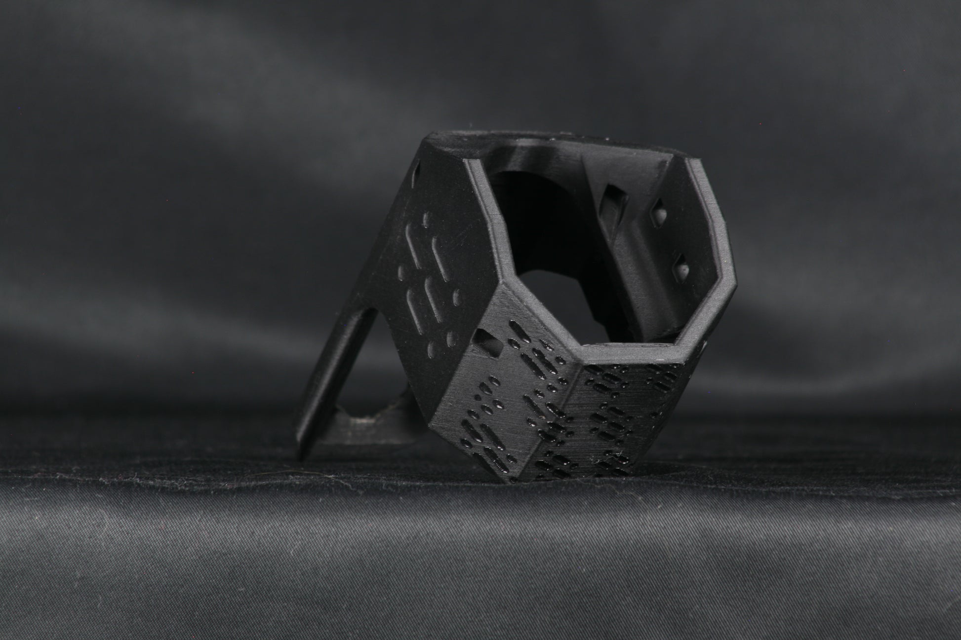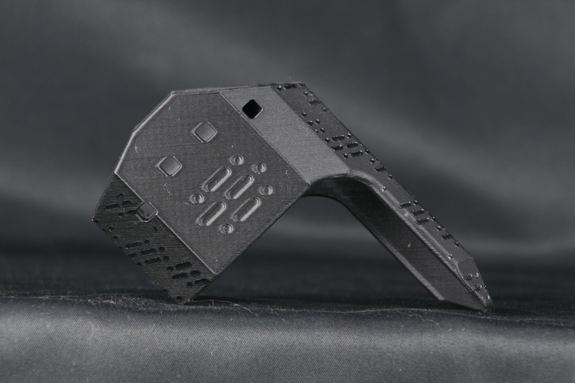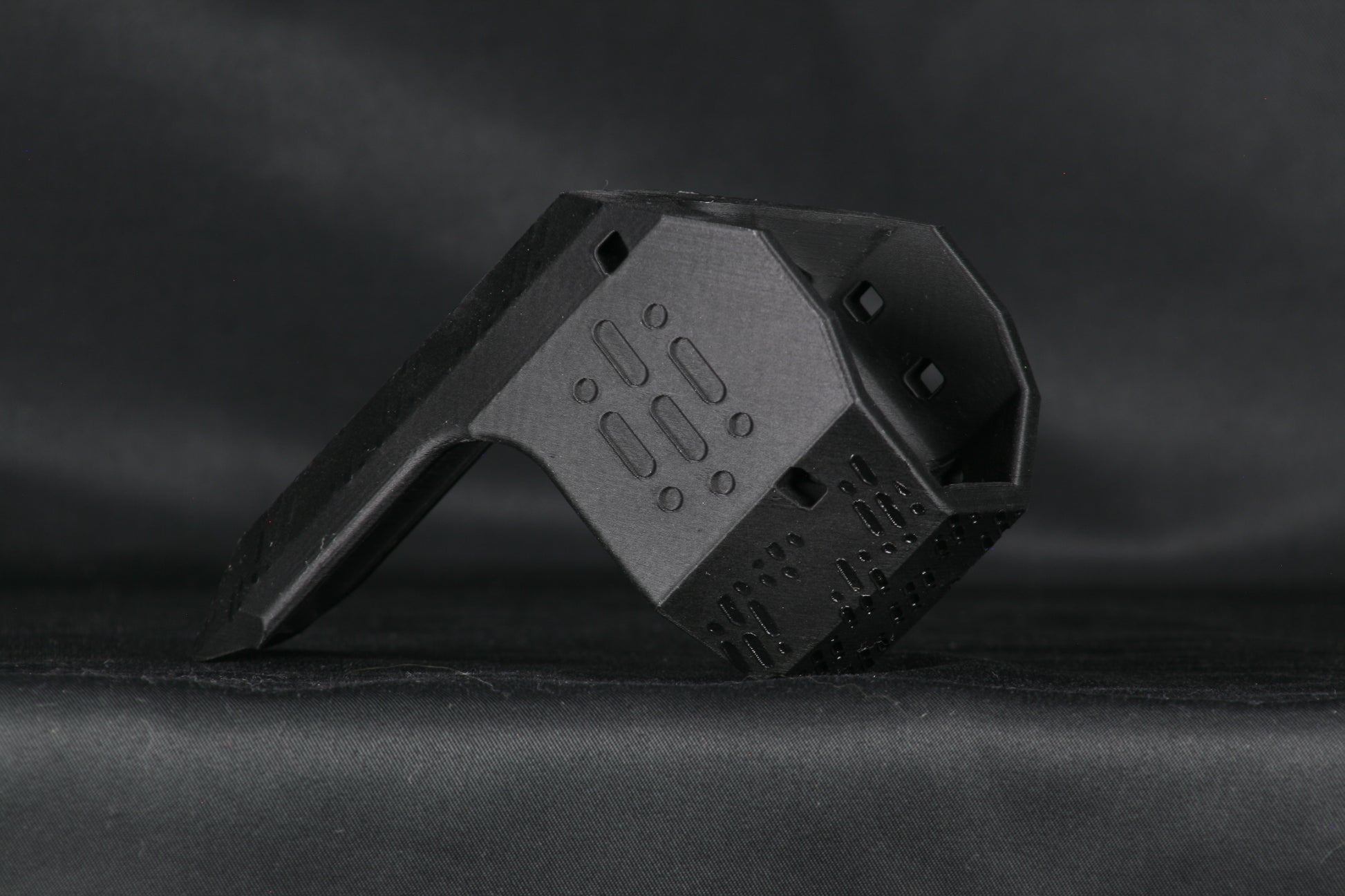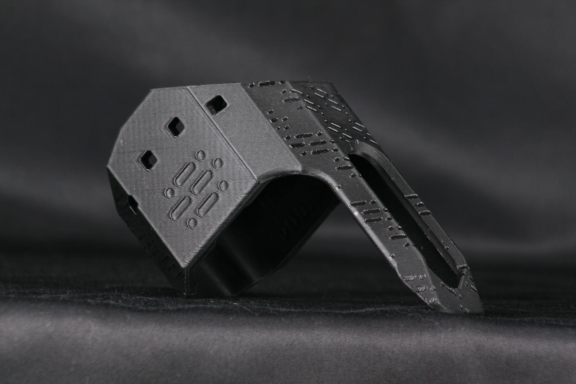 The guard is manufactured from an enhanced polyethylene terephthalate glycol alloy (PET-G) polymer comparable to pressurized consumer beverage bottles and is highly durable, flexible, and impact resistant while being weatherproof. Guards are media blasted, primed, painted in matte black, and flat matte clear coated. Every guard is hand finished so there may be mild variances in cosmetic finish with zero compromise on function.