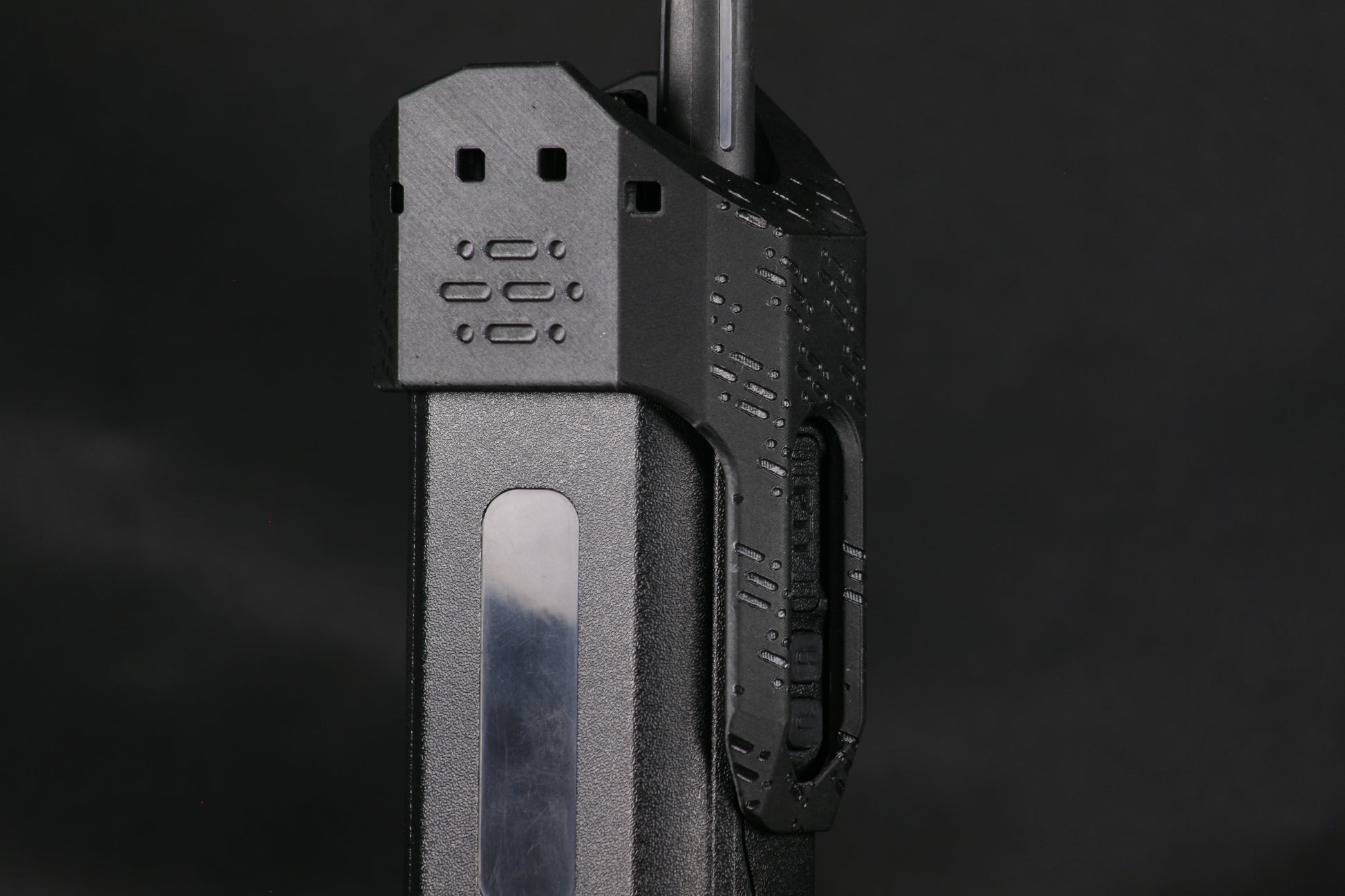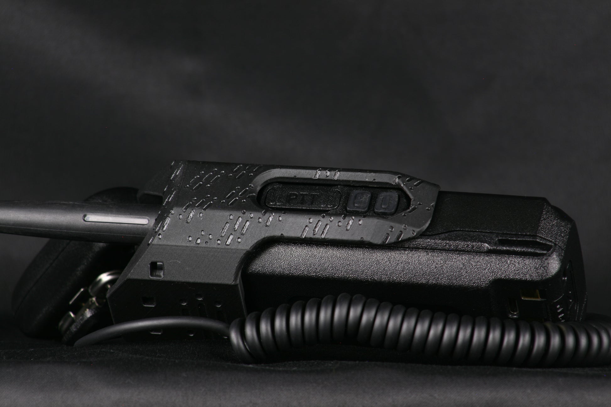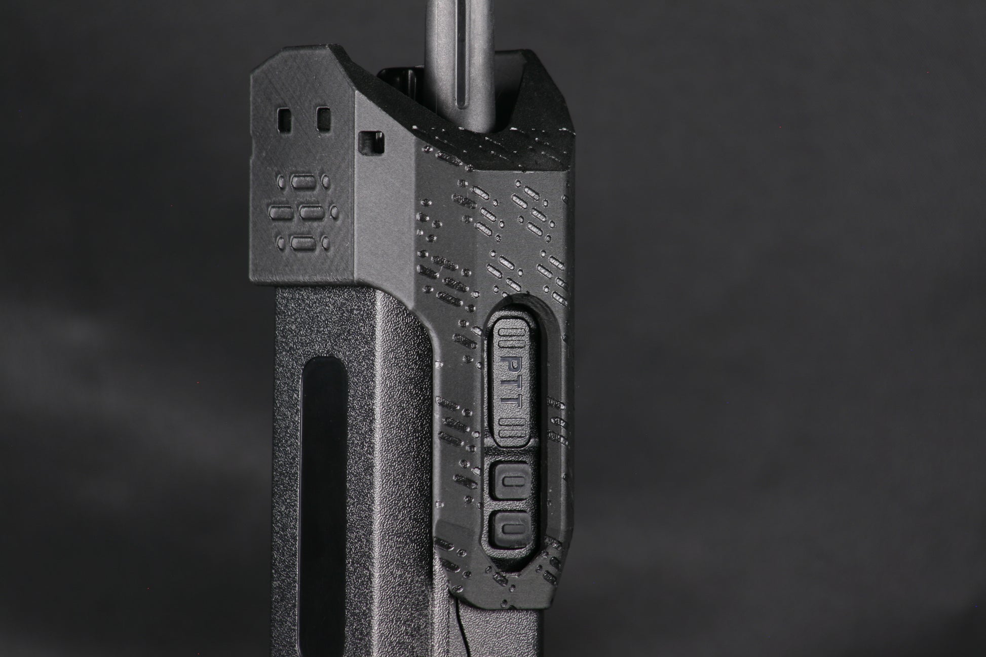 - Button cover to prevent negligent discharge of PTT buttons